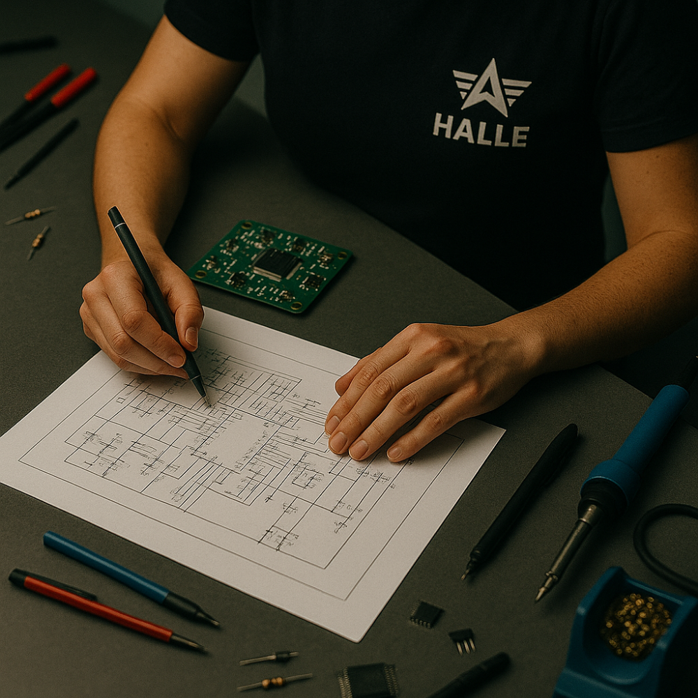 En HALLE creemos que la innovación tecnológica también se construye desde equipos pequeños, motivados y con visión clara. Somos dos profesionales chilenos apasionados por el diseño electrónico, la ingeniería aplicada y el desafío de llevar ideas complejas a soluciones reales. Combinamos experiencia en hardware, eficiencia energética, ambientes extremos y prototipado funcional para dar vida a proyectos con propósito. Más que diseñar placas, diseñamos futuro.